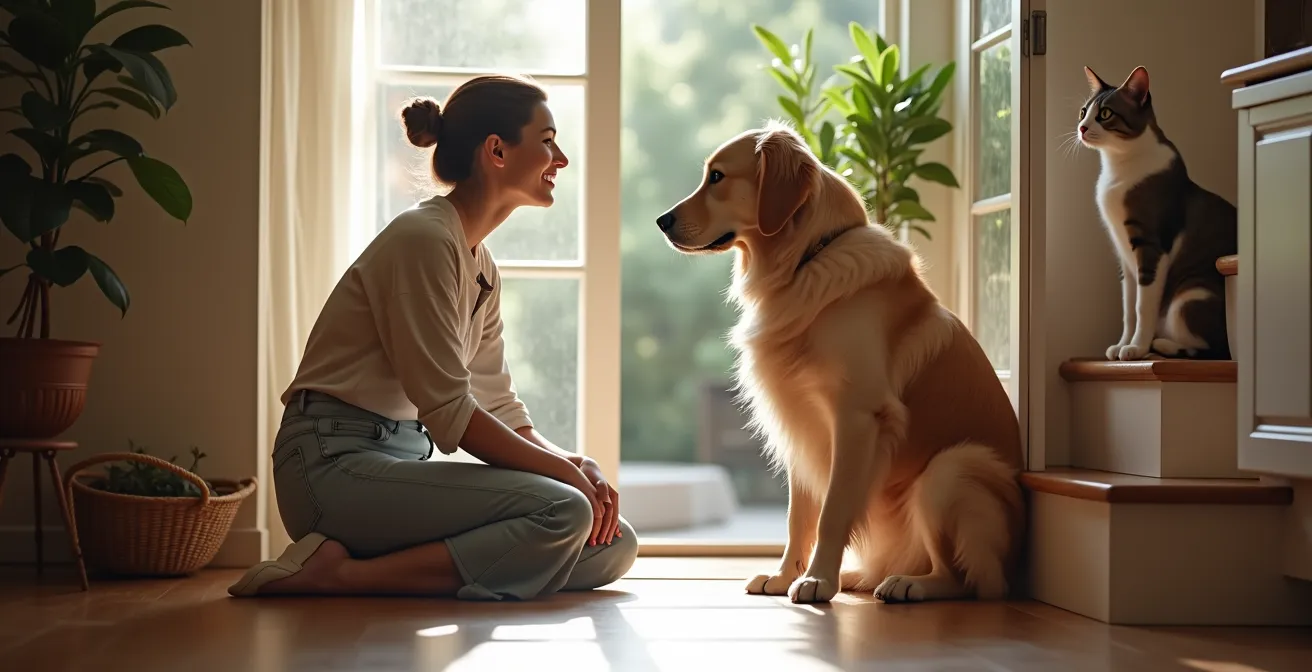 La clé est de ne pas ritualiser excessivement ces moments. Il est conseillé d’ignorer l’animal (pas de caresses, pas de paroles excessives) pendant les 10 minutes qui précèdent votre départ et les 10 minutes qui suivent votre retour. Cela permet de banaliser l’événement et de diminuer les pics d’anxiété liés à l’anticipation du départ ou à l’excitation du retour.