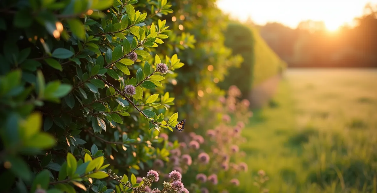 L’astuce est de choisir des espèces au développement modéré, qui ne vont pas étouffer la haie, mais simplement s’y appuyer. On les plante légèrement à l’écart du pied des arbustes pour éviter la compétition racinaire, et on les guide les premières années vers leur support. Le résultat est une haie qui non seulement protège l’intimité, mais qui devient aussi un spectacle vivant, attirant encore plus de pollinisateurs et d’oiseaux. C’est la touche finale qui transforme un simple écran en véritable jardin vertical.